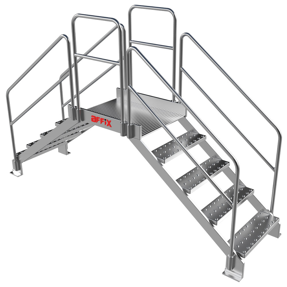 Aluminium Cross-Over Platform Steps are manufactured with ease of mobility and safety in mind. These platform steps provide safe walkways over a variety of obstacles such as conveyors, machines, pipes and other hazardous areas. Our Cross-Over Steps can be mounted at the legs for a more permanent solution or used with castor wheels for easy mobility.