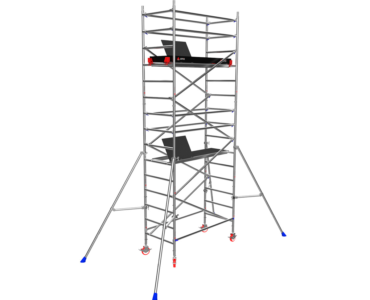 This tower is ideal for constrained spaces and is available in 0.9 Mtr width. No ladders required for access. It has a 333mm rung spacing which facilitates the scaffolder to access from either side of the tower and still ensures 3T method access.