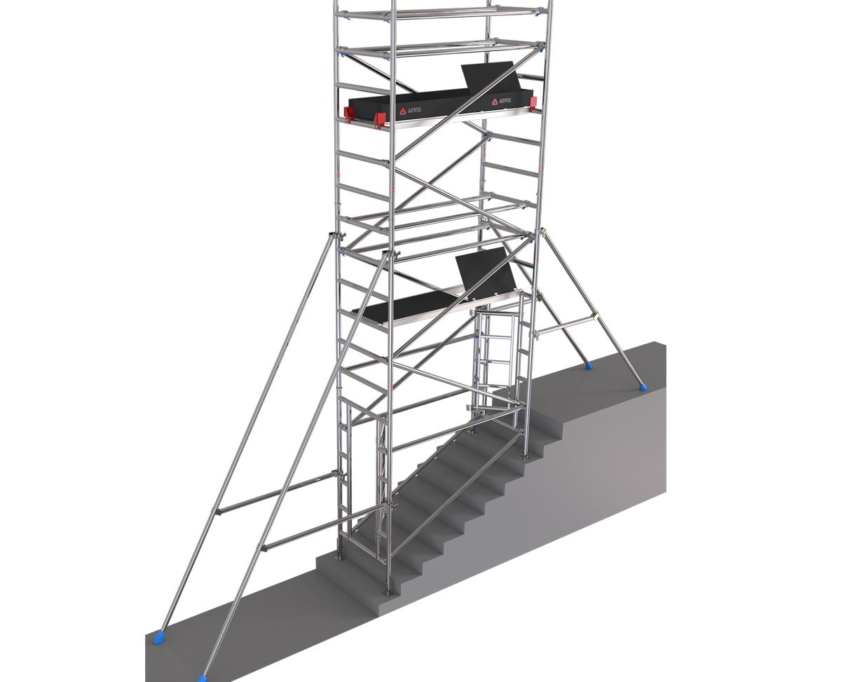This is an ideal tower when you need to work with ease and safety on both industrial and domestic staircases. It has easy access from both sides of the stairwell unit to the platform. It is built on our standard single width tower with 333mm rung spacing. Simply open and close the gate, walk through the frame then climb the frame.
