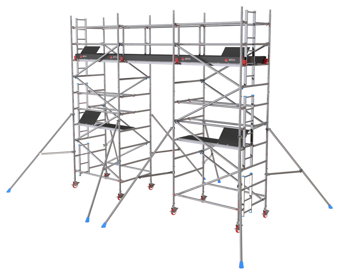 A Bridgeway scaffolding tower is ideal for working at wide working areas at a height that is difficult to access with simple scaffold towers.
