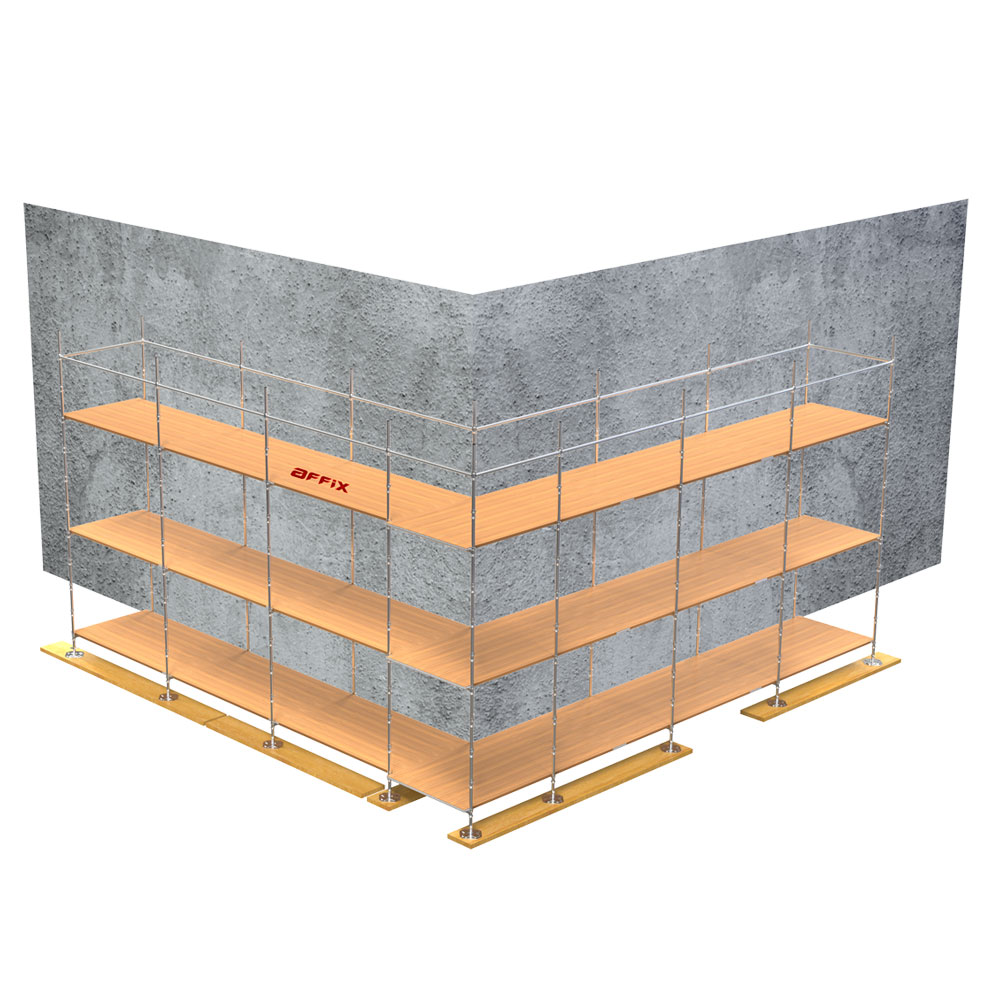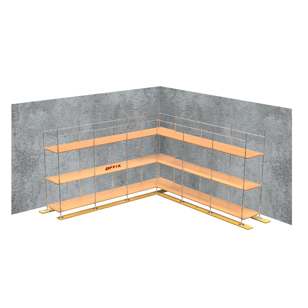 In corners mainly the scaffolding system is assembled by connecting with pipes and couplers.